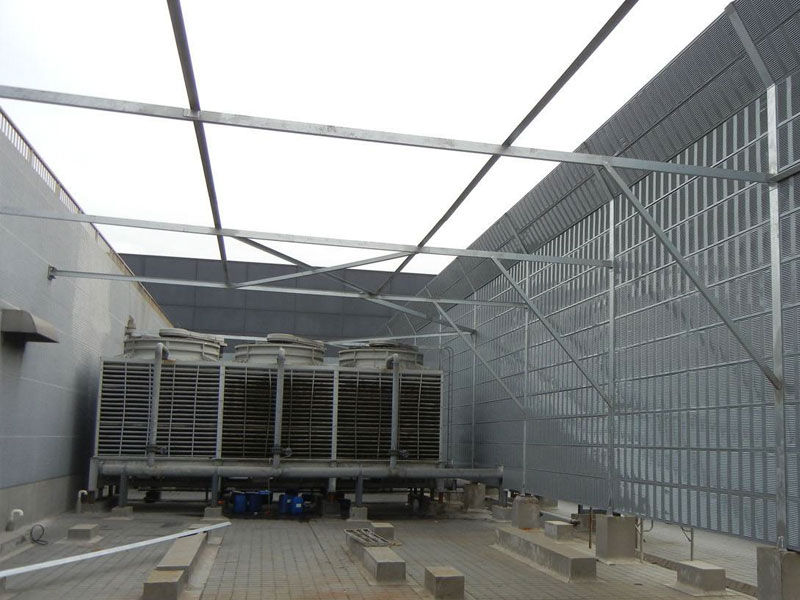 2.設(shè)備噪聲隔音:室外的各類設(shè)備包括冷卻塔、熱泵機(jī)組、空調(diào)室外機(jī)組、廠區(qū)等外圍使用隔聲屏障避免噪聲傳播到周邊,影響區(qū)域環(huán)境衛(wèi)生。