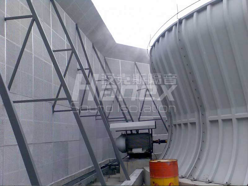 在該公司南邊廠界處進行的監(jiān)測表明:冷卻塔頂部風(fēng)機噪聲對居民的貢獻較大。在冷卻塔南面、距冷卻塔30m左右廠界處監(jiān)測數(shù)值為60.6dB(A),超過該項目所在區(qū)域55dB噪聲標(biāo)準(zhǔn)。若不采取有效降噪措施將影響項目周圍聲環(huán)境。受浙江琥珀京興天然氣發(fā)電有限公司委托,杭州漢克斯隔音技術(shù)工程有限公司在現(xiàn)場調(diào)查的基礎(chǔ)上,對現(xiàn)場數(shù)據(jù)進行分析后,提出如下噪聲治理方案,希望通過治理達到降低噪聲、達到該項目區(qū)域噪聲標(biāo)準(zhǔn)的目標(biāo)