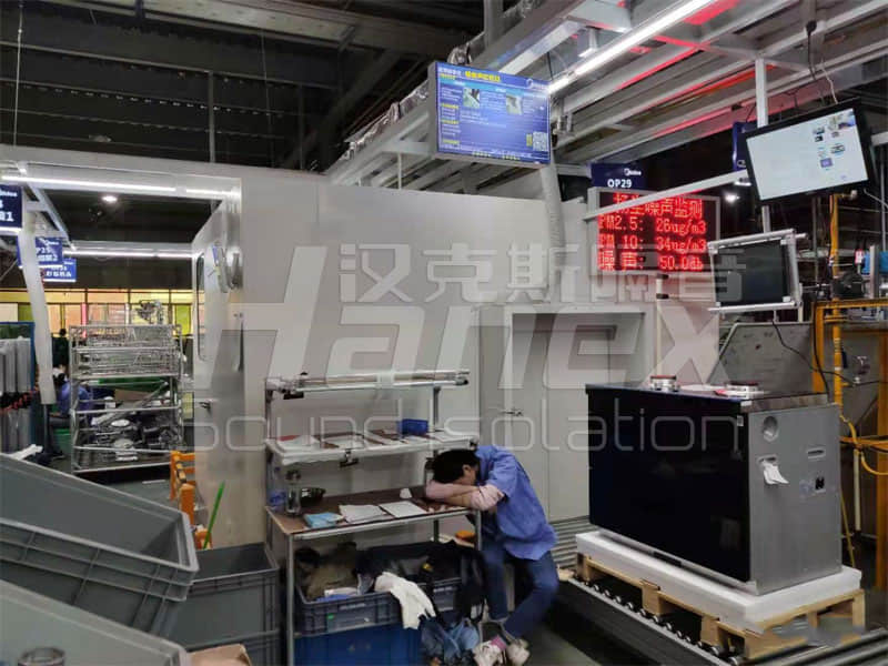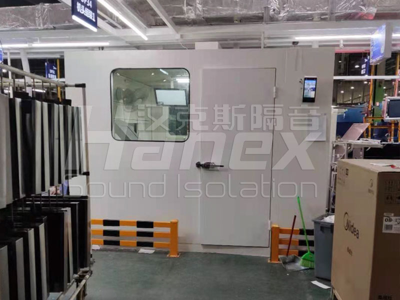 ? 流水線異音測(cè)試房板采用拼裝式結(jié)構(gòu),工廠預(yù)制現(xiàn)場(chǎng)拼裝,吸聲墻體采用鈑金框架方式,板塊與板塊之間采用螺絲緊固方式,拆卸與安裝方便。