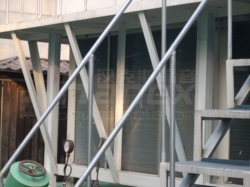 通常采用采用多層板組合的做法,利用聲音穿透多層性質(zhì)相差很大的介質(zhì)時(shí)發(fā)生反射來(lái)提高隔聲量。常用鋼龍骨隔聲構(gòu)造。這里采用Z型龍骨代替常用的C型龍骨,主要是為了改善組合隔墻的低頻隔聲性能。Z型龍骨為彈性連接結(jié)構(gòu),能更有效地削減聲波傳遞時(shí)的振動(dòng)能量,使整個(gè)結(jié)構(gòu)的隔聲量增加。清華大學(xué)建筑物理環(huán)境檢測(cè)中心的隔聲測(cè)試表明,Z型隔聲龍骨與紙面石膏板、巖棉板等材料組成的隔聲墻體,比同樣墻體結(jié)構(gòu)隔聲效果提高2dB以上,低頻隔聲效果尤為出色。另外,考慮到在本工程中墻體還需滿足防爆需要,隔聲墻與原墻體相加面密度應(yīng)≤150kg/m2(該數(shù)據(jù)為安全設(shè)計(jì)目標(biāo)值),經(jīng)過(guò)綜合隔聲比較及模擬試驗(yàn)研究,選用GRC板及紙面石膏板復(fù)合結(jié)構(gòu),經(jīng)計(jì)算該復(fù)合結(jié)構(gòu)的隔聲量大約是65dB,面密度為70kg/m2,輕鋼結(jié)構(gòu)廠房的墻體面密度可控制在10kg/m2以內(nèi)完全能夠滿足要求。這種復(fù)合結(jié)構(gòu)能有效的隔斷全頻帶噪聲,通過(guò)試驗(yàn)表明這種復(fù)合結(jié)構(gòu)避免了吻合谷的產(chǎn)生,從而增加了隔聲效果。Z型減振龍骨的應(yīng)用技術(shù)能更好的降低低頻2—3dB,但其施工難度較大,需由專業(yè)的施工隊(duì)伍來(lái)完成。